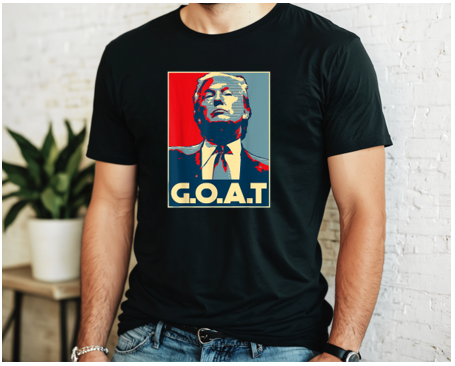 Invoke a sense of passion and belief in the exceptional GOAT Trump Tee with its powerful design and high-quality materials. Embrace the energizing and inspiring vibe of this tee, perfect for those who desire to make a bold statement with their fashion choices.